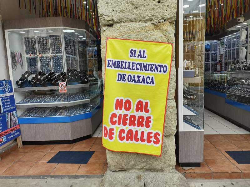 Actualmente, los comerciantes establecidos mantienen algunas lonas con la frase de no al cierre de calles en la capital.