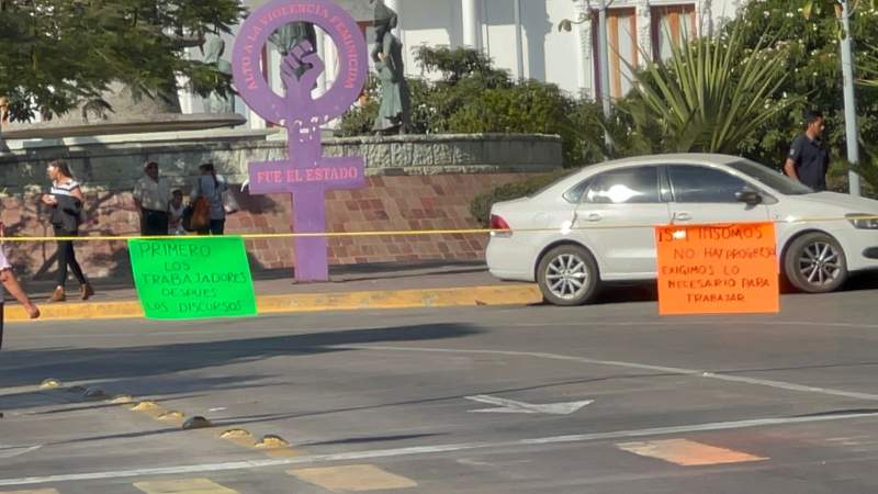 Trabajadores de la Subsección 07 del SNTSA del Hospital Civil Aurelio Valdivieso, se mantienen bloqueando a la altura de la Fuente de las Ocho Regiones.