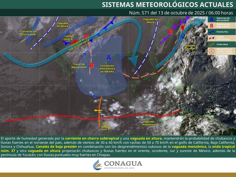 De acuerdo con el pronóstico del tiempo emitido por la Comisión Nacional del Agua (Conagua), estas condiciones son debido a la vaguada monzónica y un canal de baja presión.