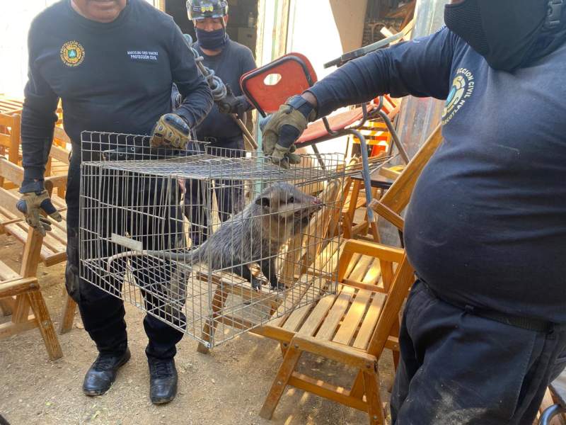 Asimismo, se atendió el llamado de habitantes de la colonia Minería, donde fue rescatado un tlacuache que se escondía en una bodega, especie silvestre inofensiva que posteriormente fue liberada en un entorno seguro.