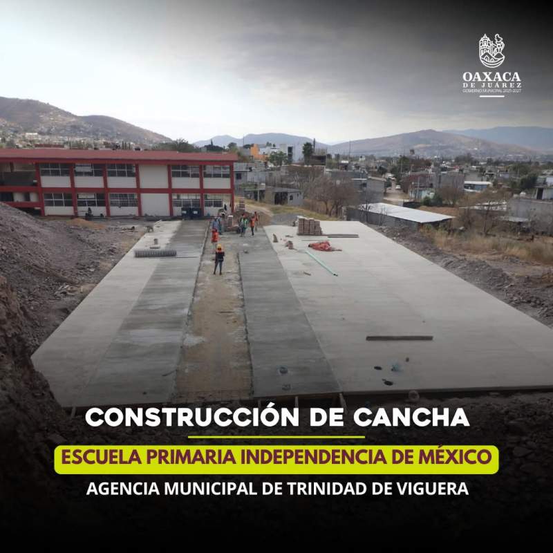 Asimismo, en la Agencia Municipal de Trinidad de Viguera se construye una cancha en la Escuela Primaria Independencia de México, promoviendo la activación física, la convivencia y la formación integral.
