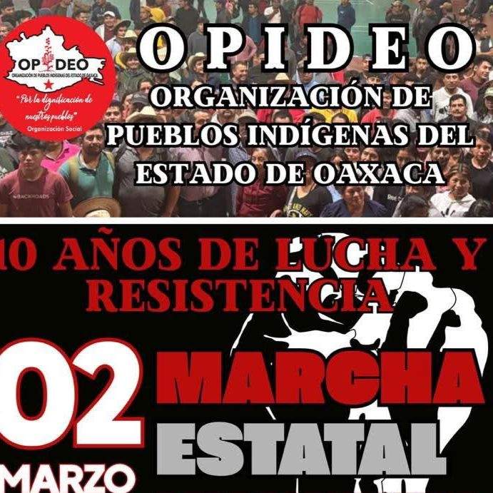 Integrantes de la Organización de Pueblos Indígenas del Estado de Oaxaca (OPIDEO) anunciaron una marcha estatal para el próximo lunes 2 de marzo en el estado de Oaxaca.