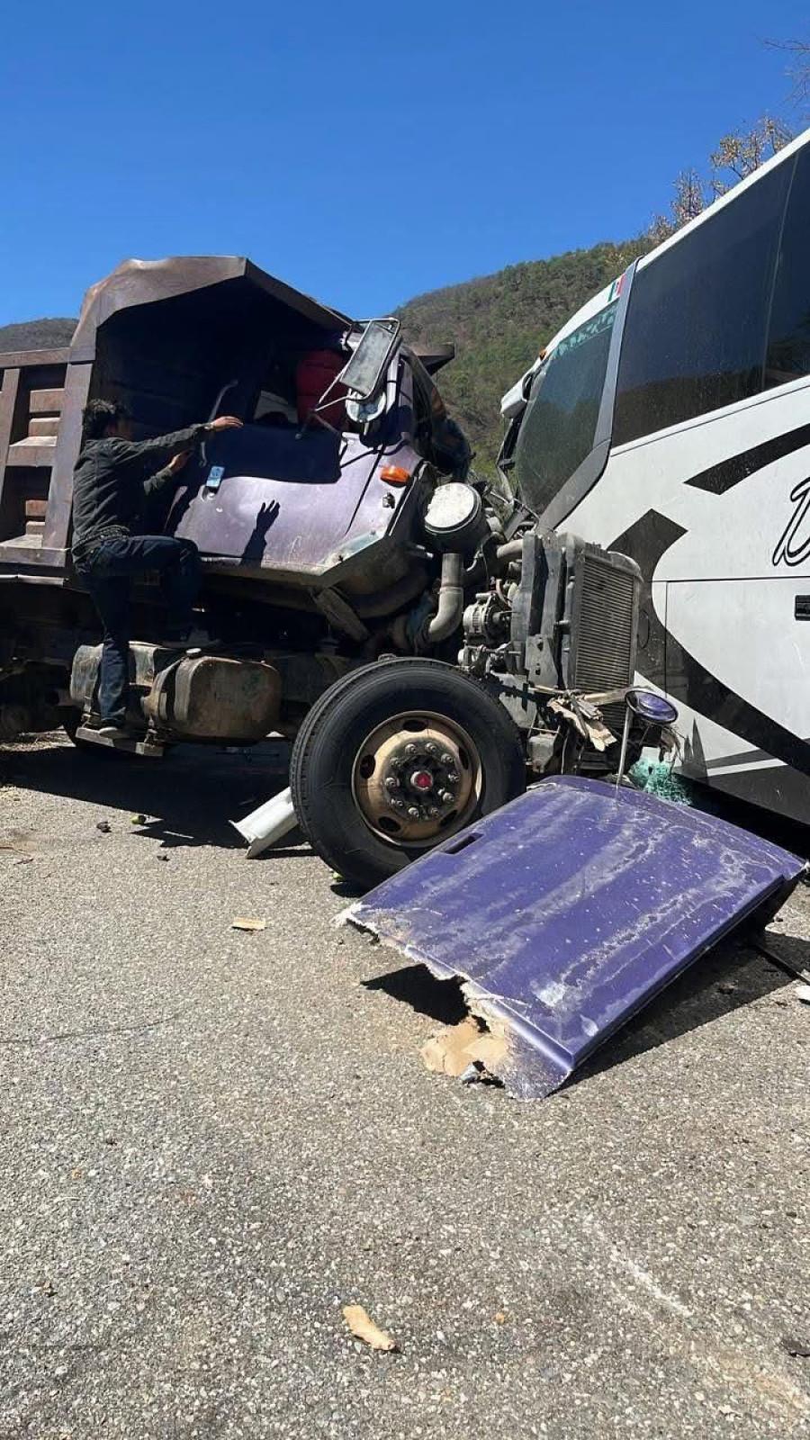 De acuerdo con el reporte, los hechos ocurrieron en el Paraje El Guayabo y la Luna, donde un autobús de pasajeros y un volteo chocaron de manera frontal.