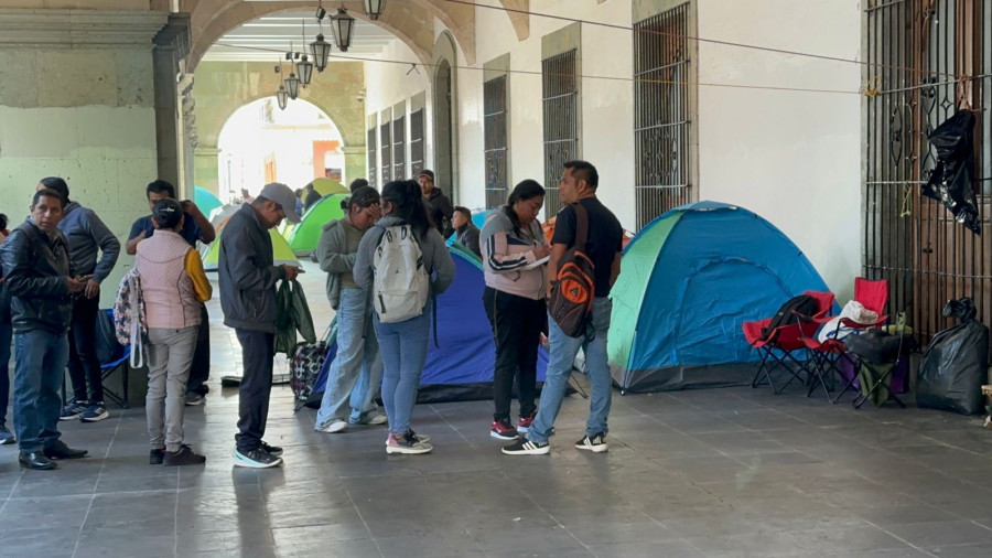 Incluso en los arcos del Palacio de Gobierno se han colocado algunas casas de campaña, buscando cubrirse del agua.
