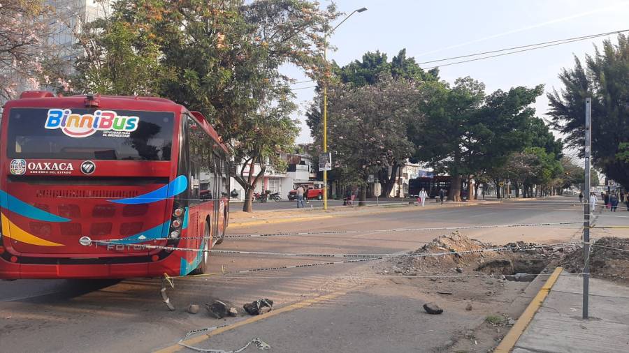 Por el momento utilizan dos autobuses del Binni Bus para cerrar sobre Avenida Universidad.