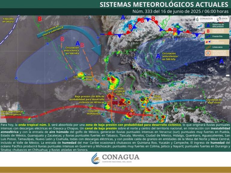 Depresión tropical Cinco-E frente a costas de Oaxaca, se prevé su intensificación a tormenta tropical Erick