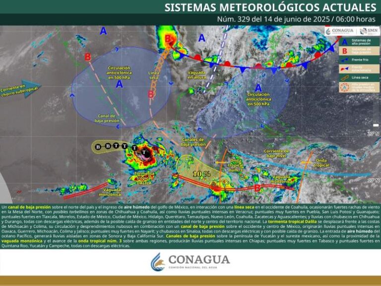 Tormenta Tropical Dalila generará lluvias moderadas a fuertes en gran parte de Oaxaca