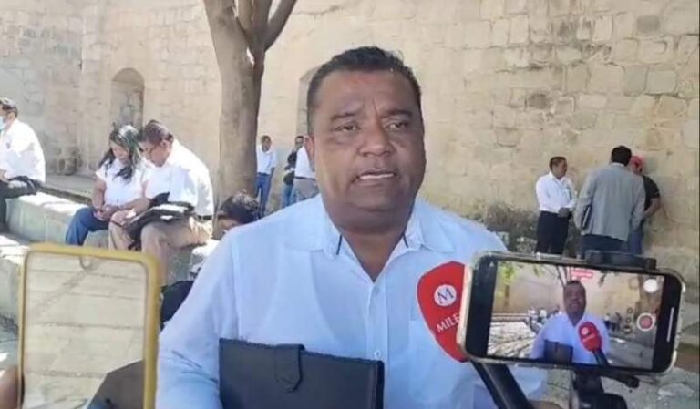 Un grupo de pobladores de San Miguel El Grande protestan en el Palacio de Gobierno de la Ciudad de Oaxaca, para exigir justicia por el…