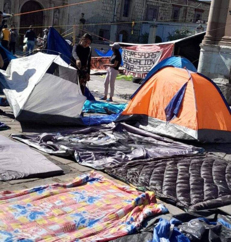 Tras vivir los estragos de la granizada en la Ciudad de Oaxaca, egresados normalistas regresaron a su campamento y han aprovechado los rayos del Sol…
