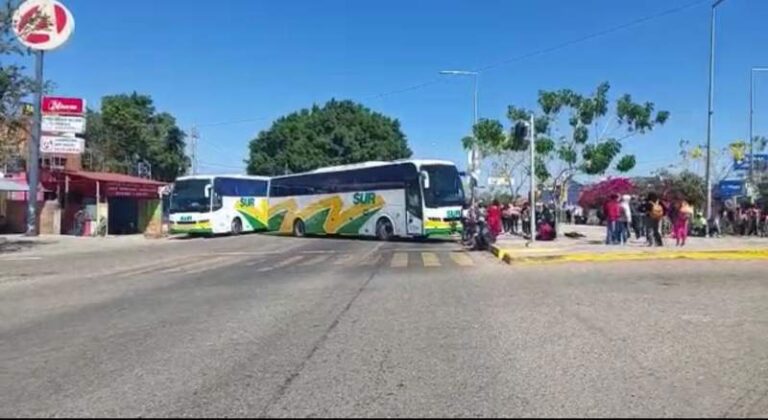Integrantes del Frente de Organizaciones Oaxaqueñas (FORO) , bloquean la carretera federal 190 a la altura del crucero de Viguera en los límites de Oaxaca…
